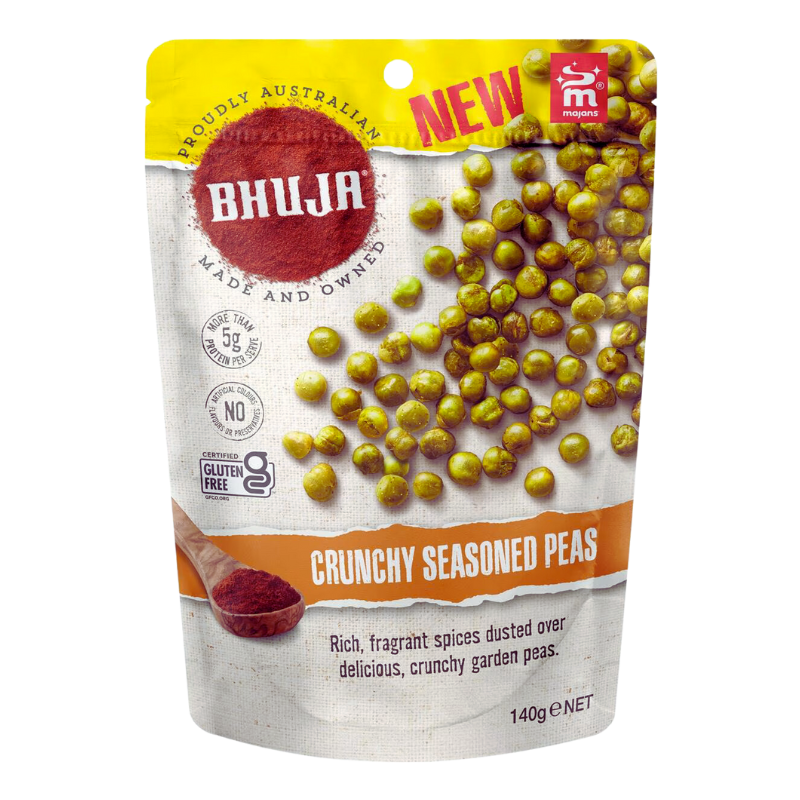 Add some crunch to your lunch! Rich, fragrant spices dusted over delicious, crunchy garden peas. The perfect healthier snack by itself or mix up your lunch with some Crunchy Seasoned Peas! We believe a snack should spice things up! Bold moves. Adventurous flavour combinations. Unexpected textures. These are the things that make your munching, crunching moments exciting and eye-opening. Look more closely at our delicious vegan and gluten free mixes using real spices and wholesome natural ingredients, and you’ll see why the magic’s in the mix. - Vegan friendly - Certified gluten free - Nothing artificial - Plant based protein - Australian owned and made Mix It Up® with Bhuja!