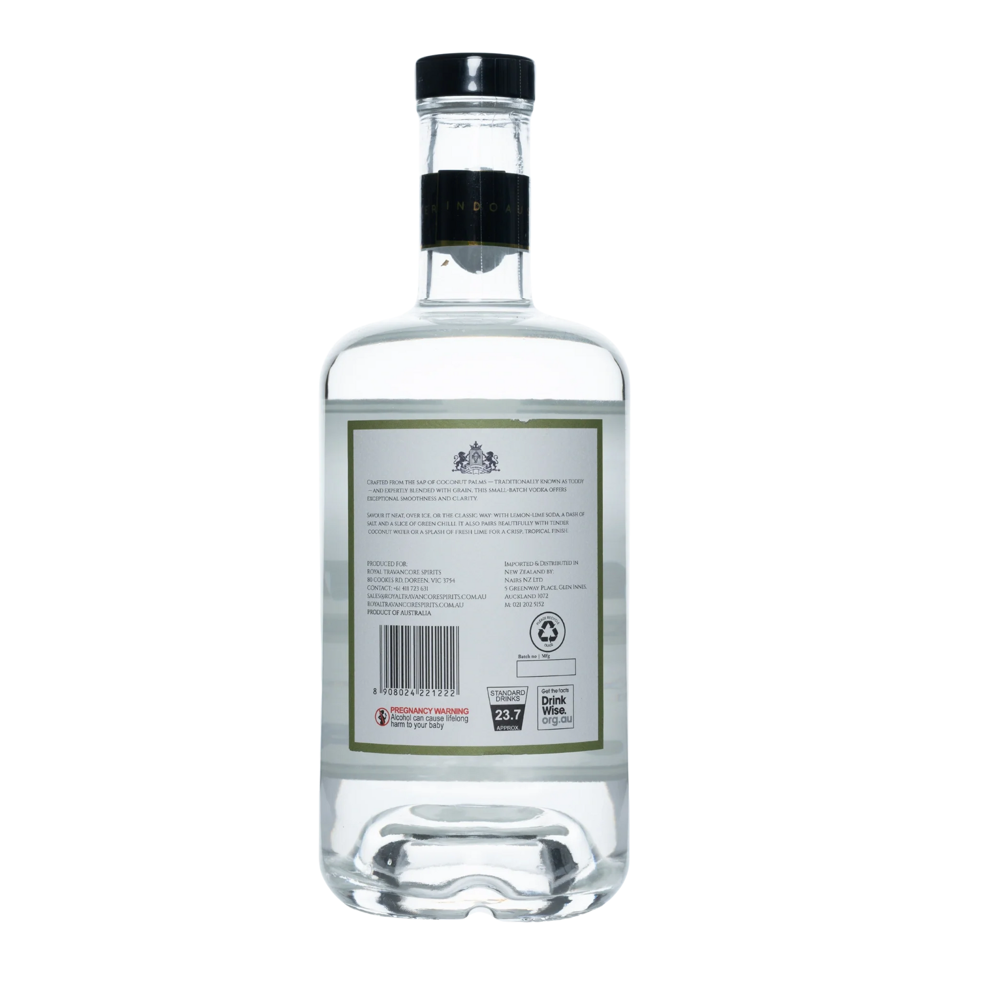 Manavatti Coconut Sap Vodka is a distinctive premium spirit, introduced for the first time in Australia, crafted from fermented coconut sap (toddy) and select grains. This rare creation delivers a naturally smooth and refined character, distilled to perfection for clarity and balance. With a crisp finish and subtle tropical sweetness, it’s perfect for inventive cocktails or enjoying neat.
